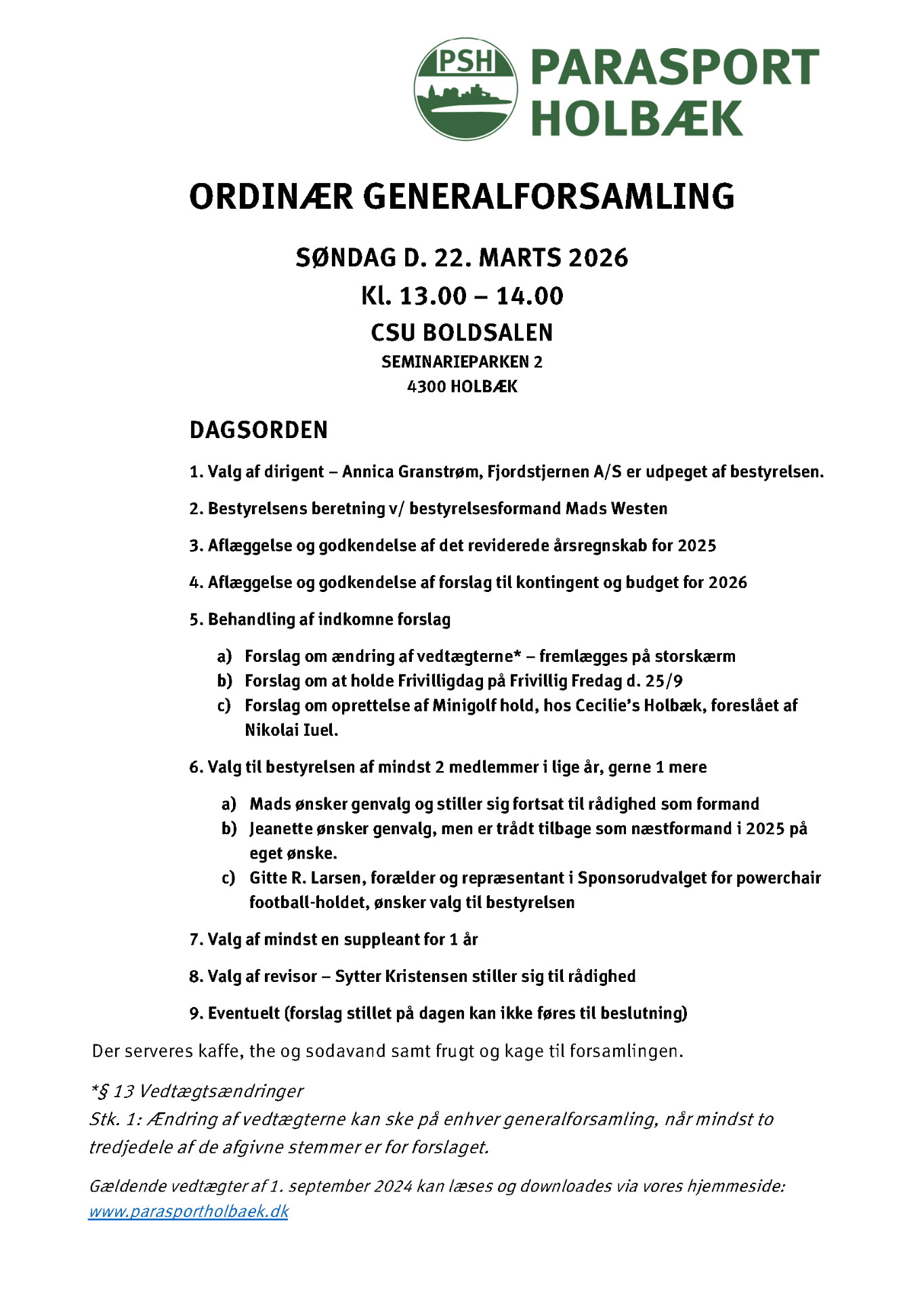 Redigeret: 15. marts 2026 - endelig dagsorden