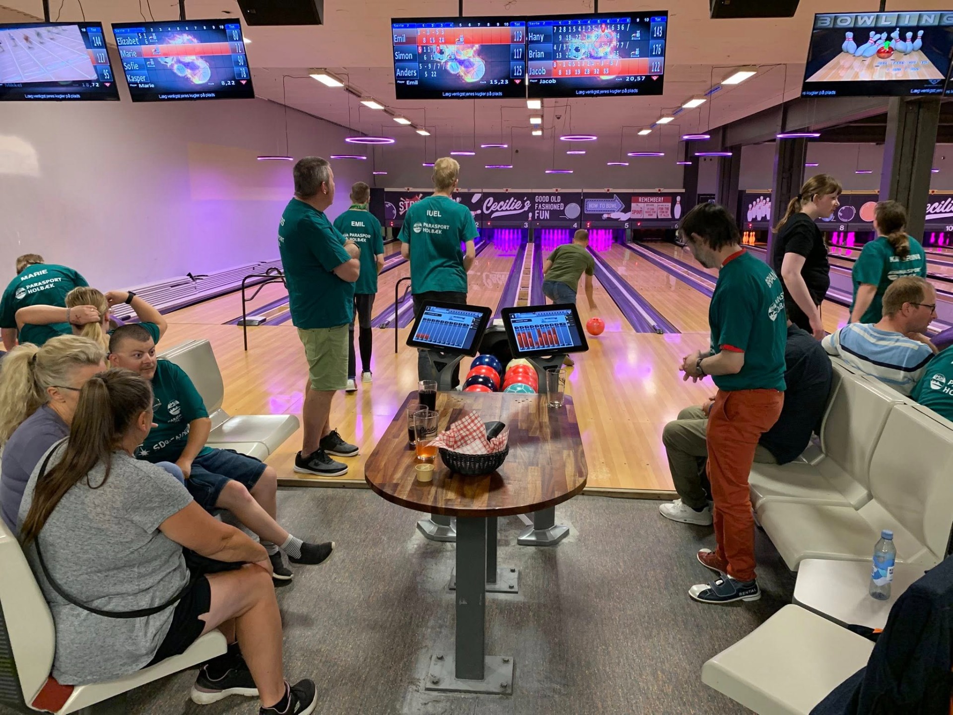 Mødes kl. 18.45, så der er tid til at finde sko og købe drikkevarer. Bowling starter kl. 19.